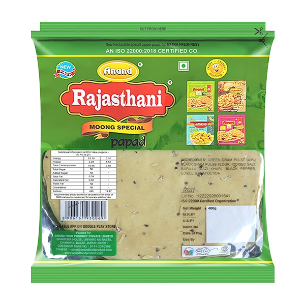 INGREDIENTS : Green Gram Pulse (43%), Black Gram Pulse Flour, Iodised Salt, Barilla (Sazi Khar), black Pepper, Edible Oil & Asafoetida
